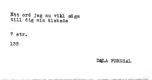 //// *-** *- ** //// Ett ord jag nu vUl saga //// till dig min älskade //// 7 str. //// 133 //// DiRLA FORNSAL ////