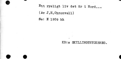 //// Ett rysligt liv det är i Nord... //// ' - //// (Av J.H.Chronvall) //// Se: E 1909 hh //// i //// t //// ! //// KB:s SKILLINGTRYCKSREG. ////