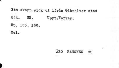 //// Ett skepp gick ut ifrån Gibraltar stad //// -* * ... < . //// 8:4. SB. Uppt.Wefvar. //// R3, 165, 166. //// Mel. //// ÅBO RANCKEN MS ////