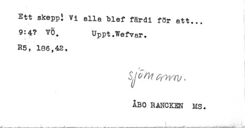 //// Ett skepp* Vi alla blef färdi för att... ' //// 9:4? V6. Uppt.Wefvar. //// R5, 186,42. //// f //// ÅBO RANCKEN MS. ////