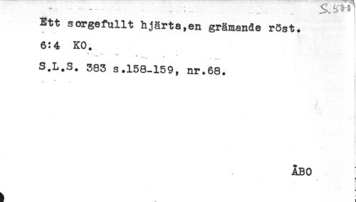//// * ''- - .... . .. ^ //// Ett sorgefullt hjärta,en grämande rSst. //// 6:4 KO. //// " *** ' . . , //// * ..- //// r //// S.L.S. 383 s.158-159, nr.68. //// ! //// ÅBO //// ! //// E ////