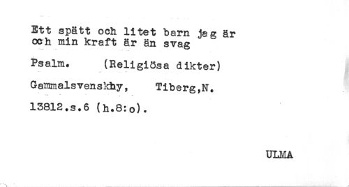 //// Ett spätt och litet barn jag är //// och min kraft är än svag //// Psalm. (Religiösa dikter) //// ' <.. - . . //// Gammalsvenskhy, Tiberg,N. //// - t //// - ^ //// 13812.s.6 (h.8:o). //// ULHA ////