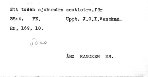 //// Ett tuåen sjuhundra sextiotre,för //// j * //// 38:4. PE. Uppt. J.O.I.Ranckan. //// t //// R5, 169, 10. //// * //// ÅBO RÅNCKEN MS. ////
