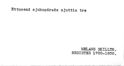 //// * **** . ^ //// Ettusend sjuhundrade sjuttio tre //// MEL.ANG SKILLTR. //// REGISTER 1700-1830. ////