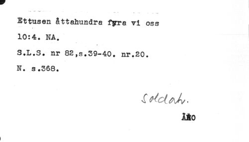 //// *.< . - - //// **" ^ V //// Ettusen åttahundra fyra vi oss //// * //// 10:4. NA. //// - . //// S.L.S. nr 82,s.39-40. nr.20. //// N. s.368. //// ÅAo ////