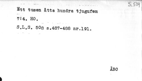 //// Ett tusen åtta hundra tjugufem //// 7:4. HO. //// ** *- //// S.L.S. 508 s.487-488 nr.191. //// * % ^. - : //// ! //// < ////