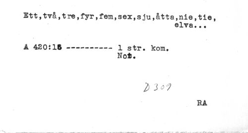 //// Ett,två,t re,fyr,fem,sex,sju,åtta,nie,tie, //// elva... //// A 420:16 ---- 1 str. kom. //// Not. //// / J- //// /RA ////