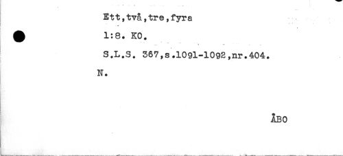 //// Ett,två,tre,fyra //// T //// ^ 1:8. KO. //// * , „ //// ' //// S.L.S. 567,s.1091-1092,nr.404. //// N. //// i //// * //// ÅBO //// _ ^ . . ^ . ^ ____ .__ ////