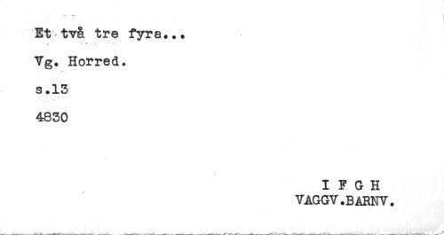 //// Et^ två tre fyra... //// ^ <-.* * * --- //// Vg. Horred. //// i*- //// s.13 //// s' * //// 4830 //// I F G H //// VAGGV.BARNY. ////