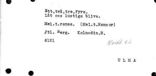 //// . '< „ //// Ett,två,tre,fyra //// /låt oss lustiga bliva. //// ... .« //// Mel.t.ramsa. (Mel.t.Ramsor) //// " ' - ... ^ //// Jtl. Berg. Kolmodln,R. ////