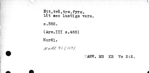 //// ^ .. ** . * ^ ^ " //// Ett,två,tre,fyra, //// låt ess Instiga vara. //// ** < //// s.382. //// t //// A J S //// (Arw.III s.468) //// i - . ' //// ; //// Nordl. //// j //// ^ r ARW. MS KB Vs 2:2. //// < //// j ////
