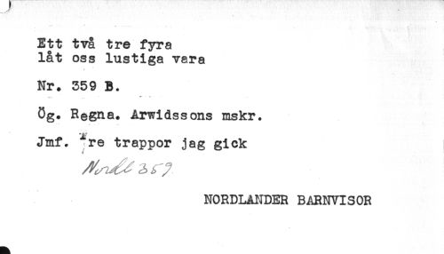 //// * ' I i //// Ett två tre fyra //// låt oss lustiga vara //// t //// Nr. 559 B. //// ,. * * *- //// Og. RegRa. Arwidssons mskr. //// Jmf. ^re trappor jag gick //// f //// NORDLANDER BARNVISOR ////