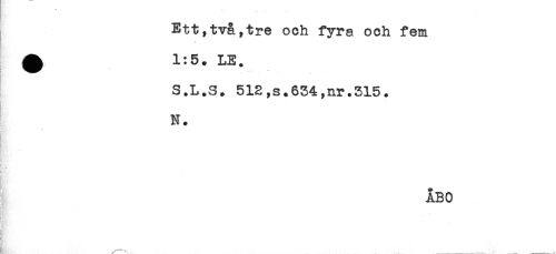 //// Ett,två,tre och fyra och fem //// t //// ^ 1:5. LE. //// S.L.S. 512,s.634,nr.315. //// N. //// * //// ; , //// ÅBO //// j //// t //// t ^ - . . ____ - ____ ////