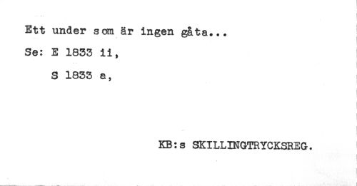 //// f //// Ett under som är ingen gåta... //// Se: E 1833 ii, //// S 1833 a, //// ! //// KB:s SKILLINGTRYCKSREG. ////