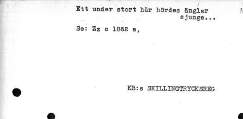 //// Ett under stort här hördes änglar p //// sjunga... //// Se: Zz c 1862 a, //// * //// . //// ^ KB:s SKILLINGTRYCKSREG ////