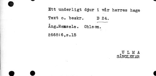 //// Ett underligt dt$ur i vår herres hage //// Text o. beskr. D 24. //// Ång.Ramsele. Ohls an. //// * ^ //// 2668:6,s.15 //// U L M A //// SANGLEKAR ////