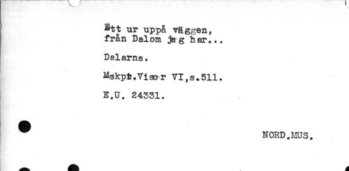 //// Ett ur uppå väggen, //// från Dalom jag har... //// Dalarna. //// Mskpt.Visor VI,s.511. //// E.U. 24331. //// . //// ! ////