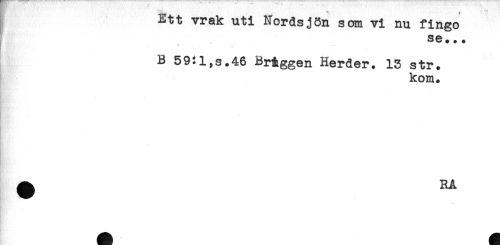 //// Ett vrak uti Nordsjön som vi nu fingo //// se... //// * //// B 59:i,s.46 BrAggen Herder. 13 str. //// kom. //// h //// . //// . //// . ////
