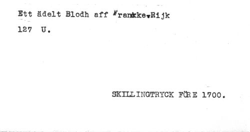 //// Ett ädelt Blodh aff Frankke*Rijk //// . //// 127 U. //// t-- //// SKIILINGTRYCK F^E 1700. ////