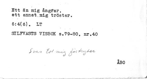 //// * * i //// Ett än mig ångfar, //// ett annat mig tröstar. //// 6:4(6). LT //// SILFVASTS VISBOK s.79-80. nr.40 //// t ////