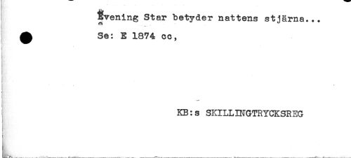 //// ^vening Star betyder nattens stjärna... //// - v. //// ^ Se: E 1874 cc, //// < //// i //// KB:s SKILLINGTRYCKSREG ////