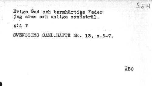 //// - - . - - //// Evige Gud och barmhärtige Fader //// jag arma och usliga syndaträl. //// * * //// 4:4 ? //// SVENSSONS SALIL.HÄFTE NR. 13, s.6-7. ////