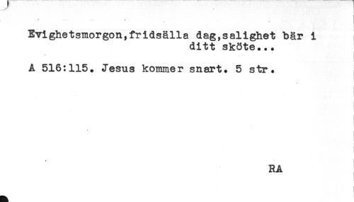 //// < * //// Evighetsmorgon,fridsälla dag,salighet bär i //// ditt sk8te... //// - < //// A 516:115. Jesus kommer snart* 5 str* ; //// ! //// * ' //// RA ////