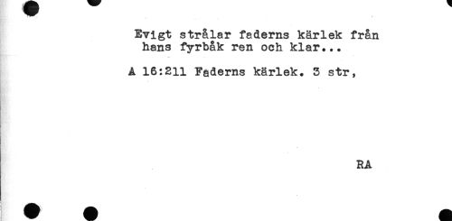 //// Evigt strålar faderns kärlek från //// hans fyrbåk ren och klar... //// - //// A 16:211 Faderns kärlek. 5 str, //// RA ////