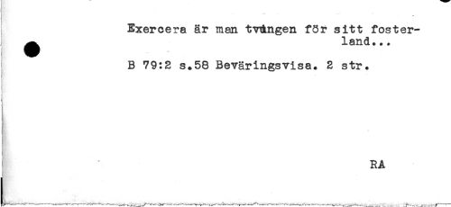 //// i //// t //// Exercera är man tvången för sitt foster- //// ^^ land... //// B 79:2 s.58 Beväringsvisa. 2 str. //// a. - ////