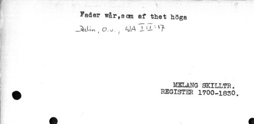 //// Fader wår,som af thet höga //// ! //// - //// MELANG SKILLTR. //// ^ REGISTER 1700-1830. ////