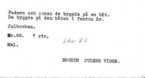 //// Fadern och sonen de byggde på en båt. //// De byggde pa den båten i femton år. //// Julbocken. //// Hr.68. 7 str. //// j yo //// Mel. //// BRODIN JULENS VISOR. ////