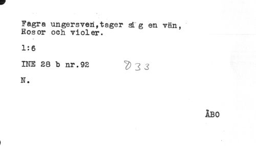 //// ^ . " //// Fagra ungersveR,tager st g en vän, //// Rosor och violer. //// * //// 1:6 //// INE 28 b nr.92 ^ ^ J //// N. ////