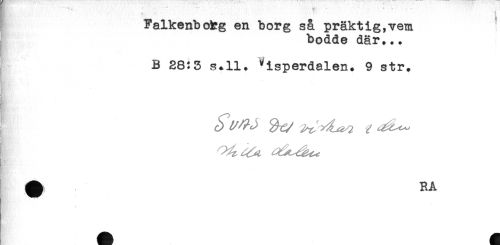 //// ! FalkenboRg en borg så präktig,vem //// bodde där... //// ! B 28:3 s.ll. ^isperdalen. 9 str. ////