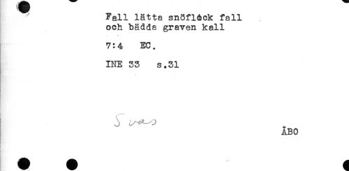 //// Fall lätta snöfl&ck fall //// och bädda graven kall //// .... //// 7:4 EC. //// INE 33 s.31 //// - ////