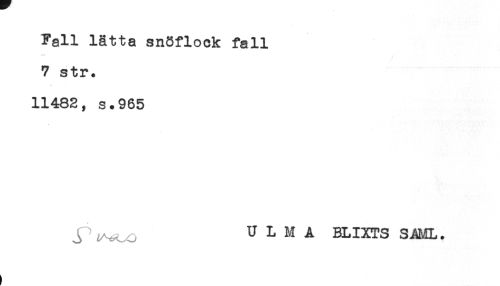 //// Fall lätta snöflock fall //// 7 str. //// 11482, s.965 //// y U L M A BLIXTS SAML. ////