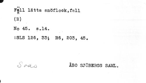//// Fall lätta snöflock,fall //// (R) //// No 45. s.14. //// . - * < . * ^ . . //// :SLS 126, 35; R6, 203, 45. //// ÅBO SJÖBERGS SAML. ////