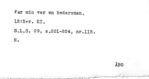 //// ^ar min var en hedersman, //// t //// 12:5+r. Kl. //// S.L.S. 29, s.201-204, nr.115. //// N. //// ÅBO ////