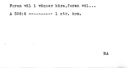//// Faren väl i vänner kära,faren väl... //// <. * i //// A 326:6 ---- 1 str. kom. //// * //// v //// RA ////