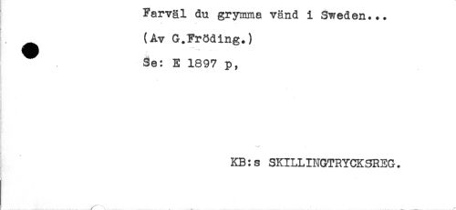 //// farväl au grymma vand i Sweden... //// M - //// ( //// ^ (Av G.Fröding.) //// 3e: E 1897 p, //// KB:s SKILLINGTRYCKSREG. //// ....... ////