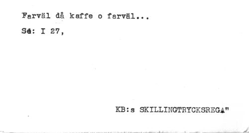 //// Farväl då kaffe o farväl... //// * //// Sä: I 27, //// KB:s SKILLINGTRYCKSREGA" //// < ////