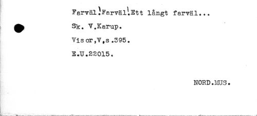 //// FarväljFarväl^Ett långt farväl... //// " //// ^ Sk. V.Karup. //// Vis or ,V,s .595. //// E.U.22015. //// NORD.MUS. ////