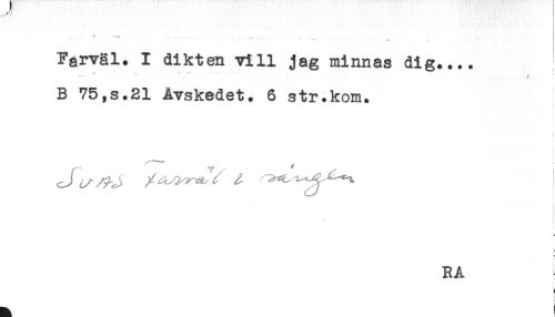 //// ' -* - -- . , - . . - ... .. //// Farväl. I dikten vill jag minnas dig.... //// / : //// B 75,s.21 Avskedet. 6 str.kom. //// t //// * - ! //// i //// r //// RA ////