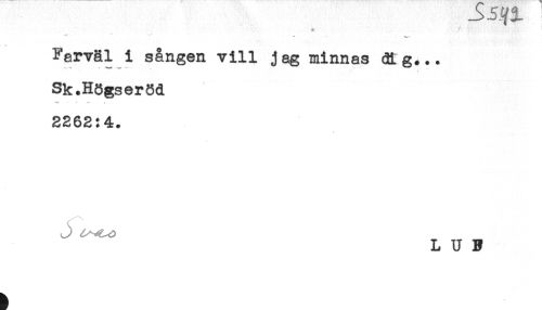 //// é) //// /- - //// Farväl i sången vill jag minnas dig... //// Sk.Högseröd //// 2262:4. //// L U B ////