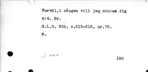 //// Farväl,! sången vill jag minna? dig //// 8:4. Br. //// .' ' " ' - ^ ' ..... ^ //// S.L.S. 508, s.213-215, nr.75. //// N. //// ABO //// . ////