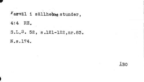 //// ) //// < //// < //// ^arväl i sällhetKns stunder, //// 4:4 RE. //// S.L.S. 52, s.121-122,nr.83. //// N.s.174. //// ÅBO ////