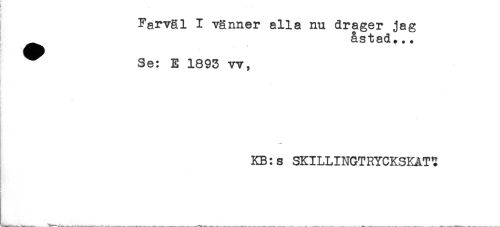 //// } //// Farväl I vänner alla nu drager jag //// ^ åstad... //// Se: E 1893 vv, //// ) //// i //// KB:s SKILLINGTRYCKSKÅTT ////