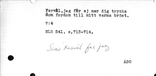//// Farväl, jag får ej mer dig trycka //// Som fordom till mitt varma bröst. //// 7:4 //// t -- * //// * ^ //// SLS 541, s.713-714. //// 3 //// ! A ' //// { //// IF . //// t< //// ÅBO ////