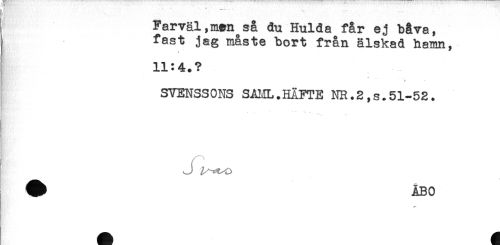 //// [ Farväl,men så du Hulda får ej båva, //// ) fast jag måste bort från älskad hamn, //// 11:4.? //// SVENSSONS SAML.HÄFTE NR.2,s.51-52. //// [ i ////