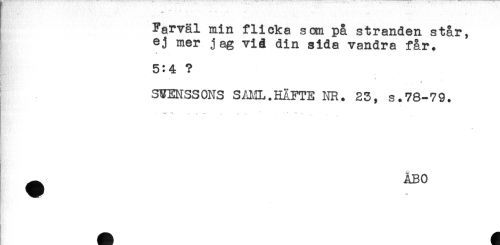 //// Farväl min flicka som på stranden står, //// ej mer jag vid din sida vandra får. //// 5:4 ? //// < //// ji t //// SVENSSONS S/.ML.HÄFTE NR. 25, s.78-79. //// ^ ÅBO ////