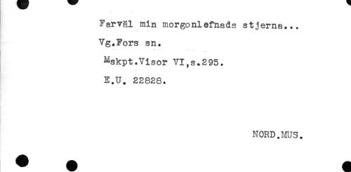 //// Farväl min morgonlefnads stjerna... //// - - ^ //// Vg.Fors sn. //// Mskpt.Visor VI,s.295. //// E.U. 22828. //// NORD.MUS. //// )r tå l) ////